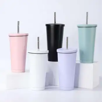 20oz Custom Stainless Steel Tumbler Straight Insulated Cold Vacuum Thermal Cup Flip Cap Lid Travel Colorful Cup for Hot Cold
