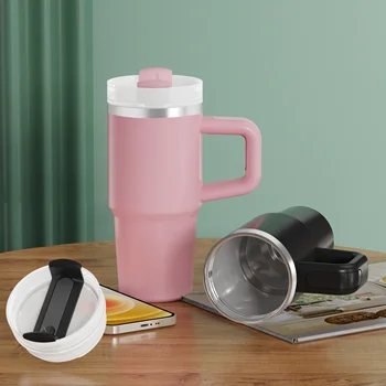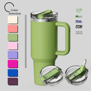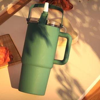 2025 New Design 40oz Large Handle Anti-Fall Durable Stainless Steel Double Wall Tumbler With Straw Travel Cup