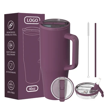 Trendy Color 40oz Double Wall Coffee Stainless Steel Bpa Free Travel Mug Thermos Cups Tumblers With Handle Straw Lid
