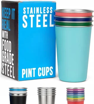 Trendy Color Eco Friendly 16oz Stainless Steel Stackable Tumblers Metal Drinking Glasses Coffee Cups Mug