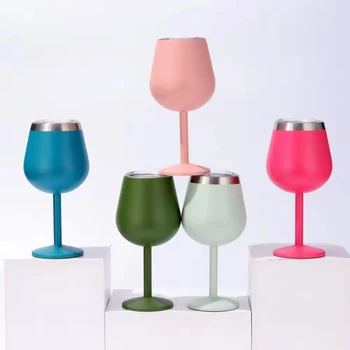 2025 New Design 14oz Drinking Champagne Goblet Wine Glasses Cup Removable Stainless Steel Wine Tumbler