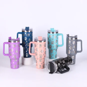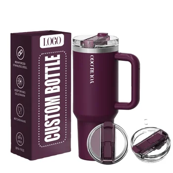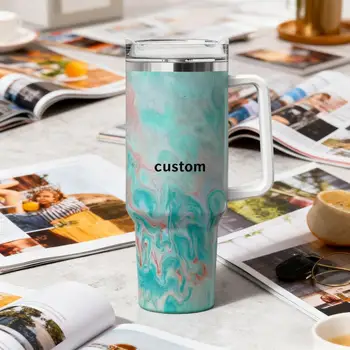 Custom 40 Oz Insulated Double Wall Stainless Steel Patent Lid Tumbler With Handle Travel Coffee Mug for Office Gift Set