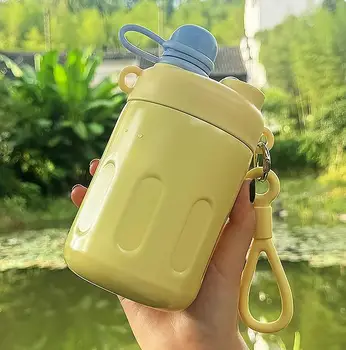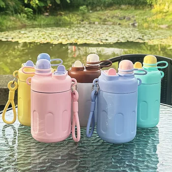 Cute Stainless Steel Kids Water Bottle New Design Hot Cold Thermal Handle Straw Insulated Vacuum Flask Thermos Travel Mug