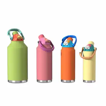 Cute Stainless Steel Kids Water Bottle New Design Hot Cold Thermal Handle Straw Insulated Vacuum Flask Thermos Travel Mug