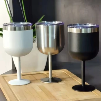 New Arrival 14oz Double-Walled Stainless Steel Wine Tumbler with Removable Handle Customizable Logo for Champagne Wine Goblet
