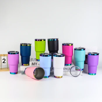 Wholesale 20oz 30oz Rainbow Stainless Steel Insulated Reusable Travel Car Coffee Mug Tumbler Laser Engraved Lid