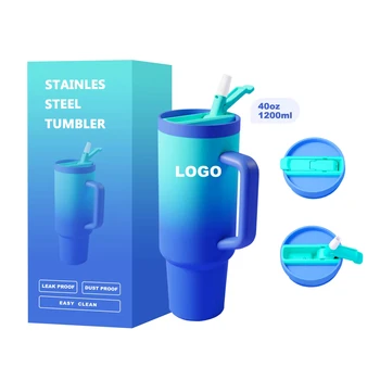 Simple Style Bpa Free Sealed Leak-Proof Stainless Steel Vacuum 40oz Double Wall Flip Straw Car Tumbler With Handle